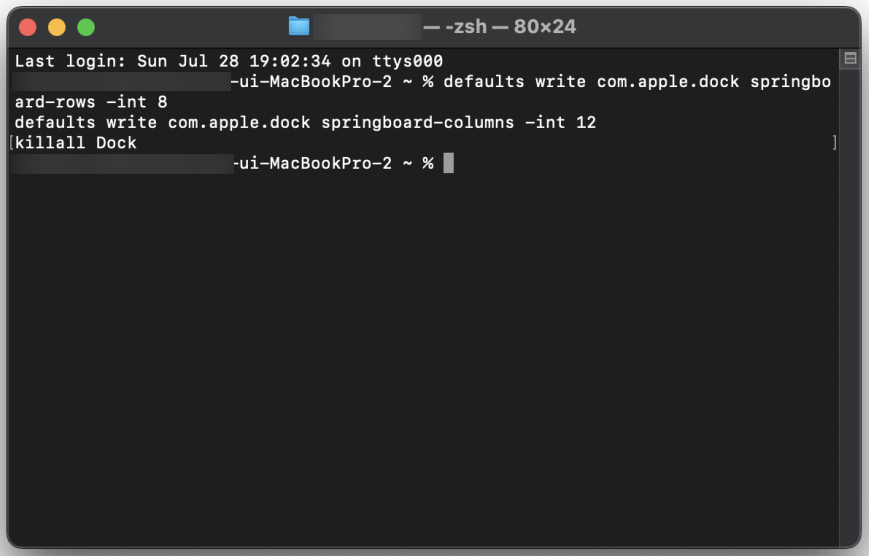 그럼 이렇게 터미널로 진입을 하게 되고, 저는 제 이름으로 설정해 놓아서 가리긴 했지만 본인이 설정해놓은 맥북 이름이 뜹니다.